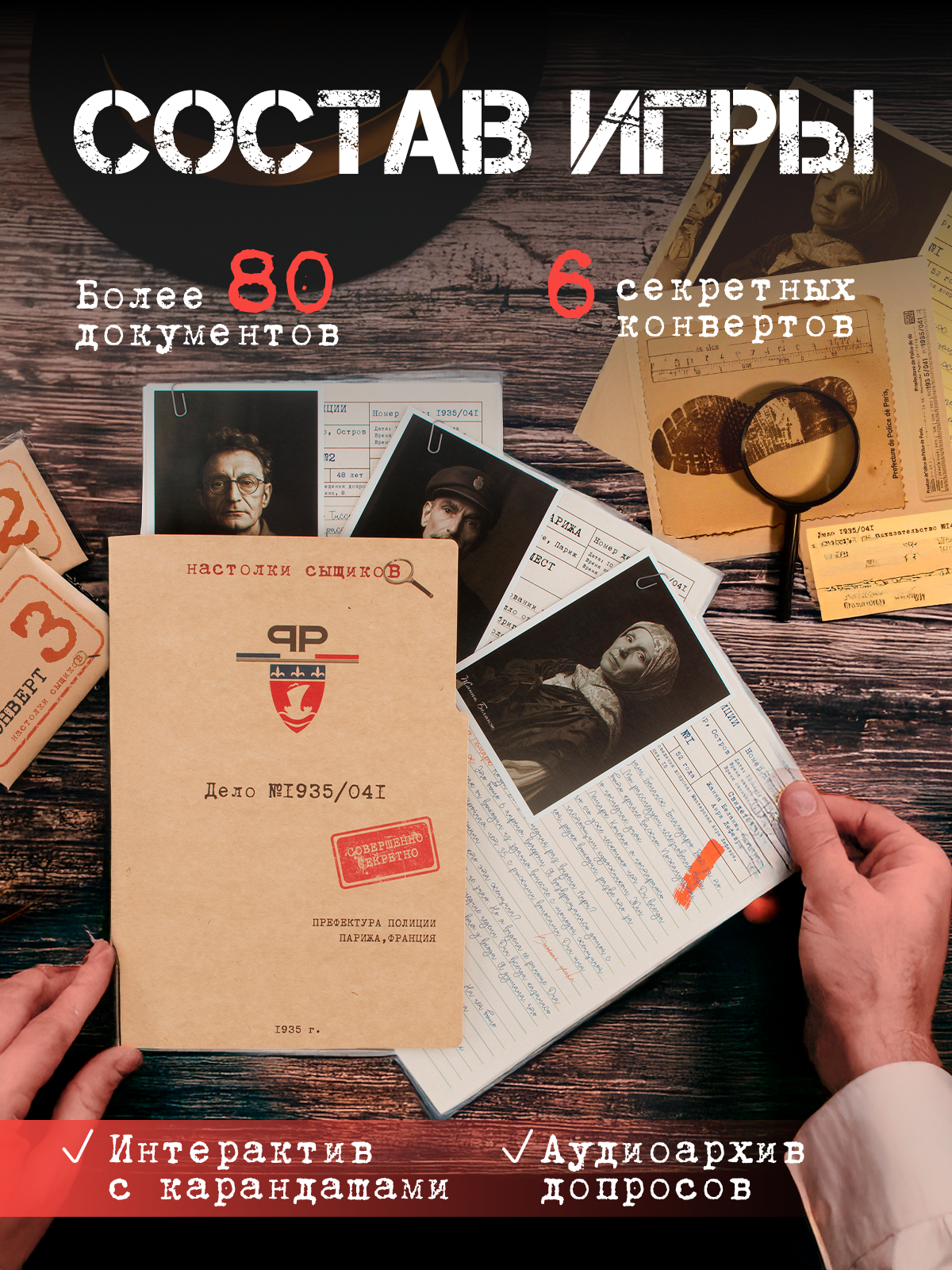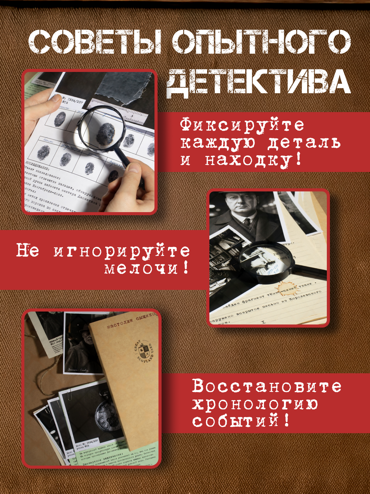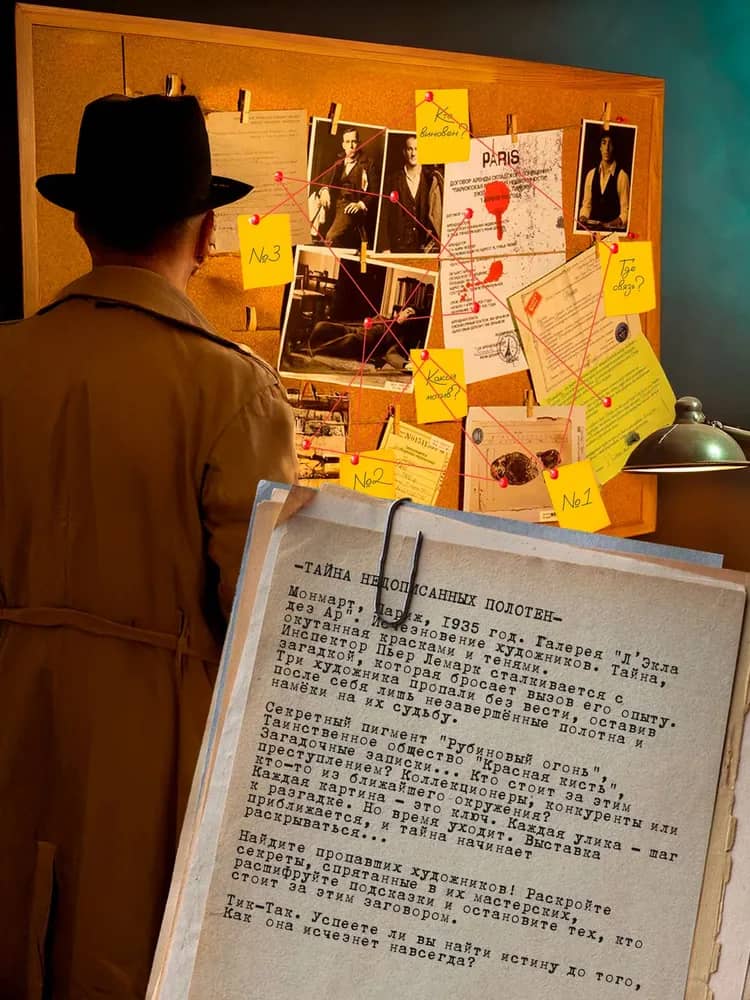 - Всё оформлено в ретро-стиле — как в настоящем детективном агентстве 1930-х.
