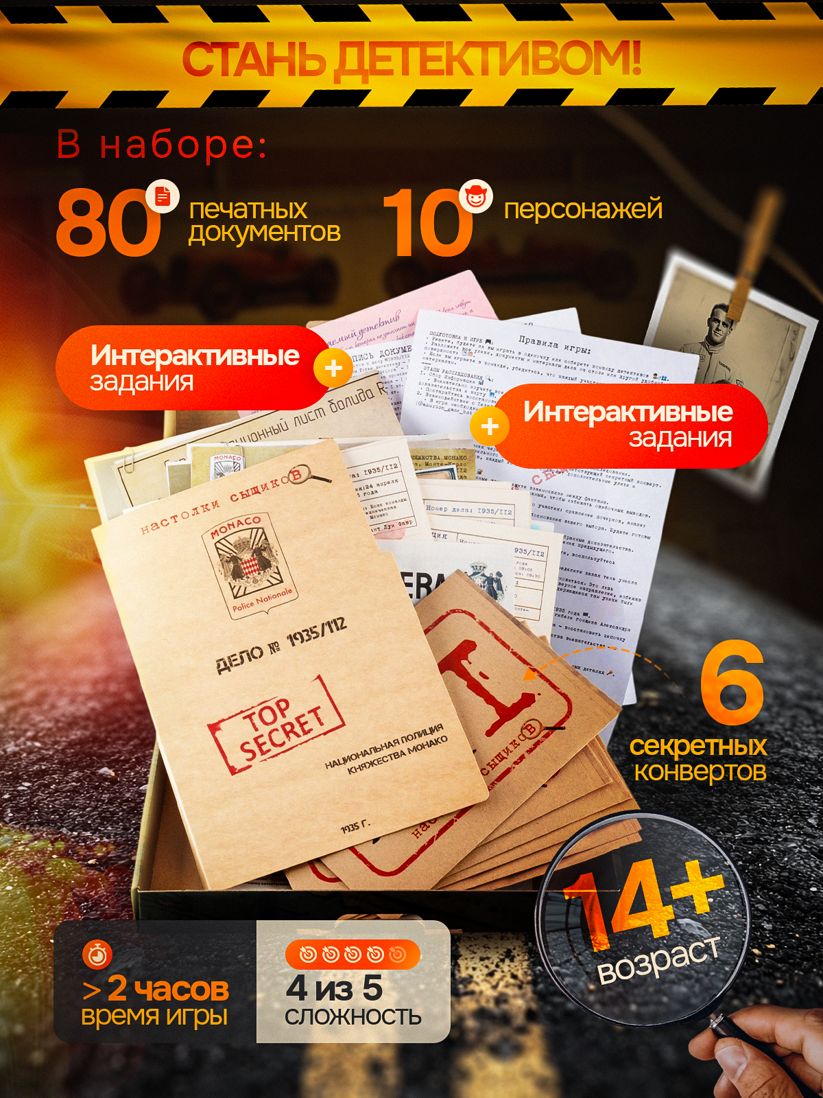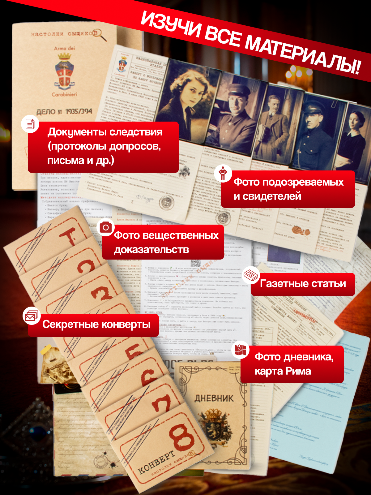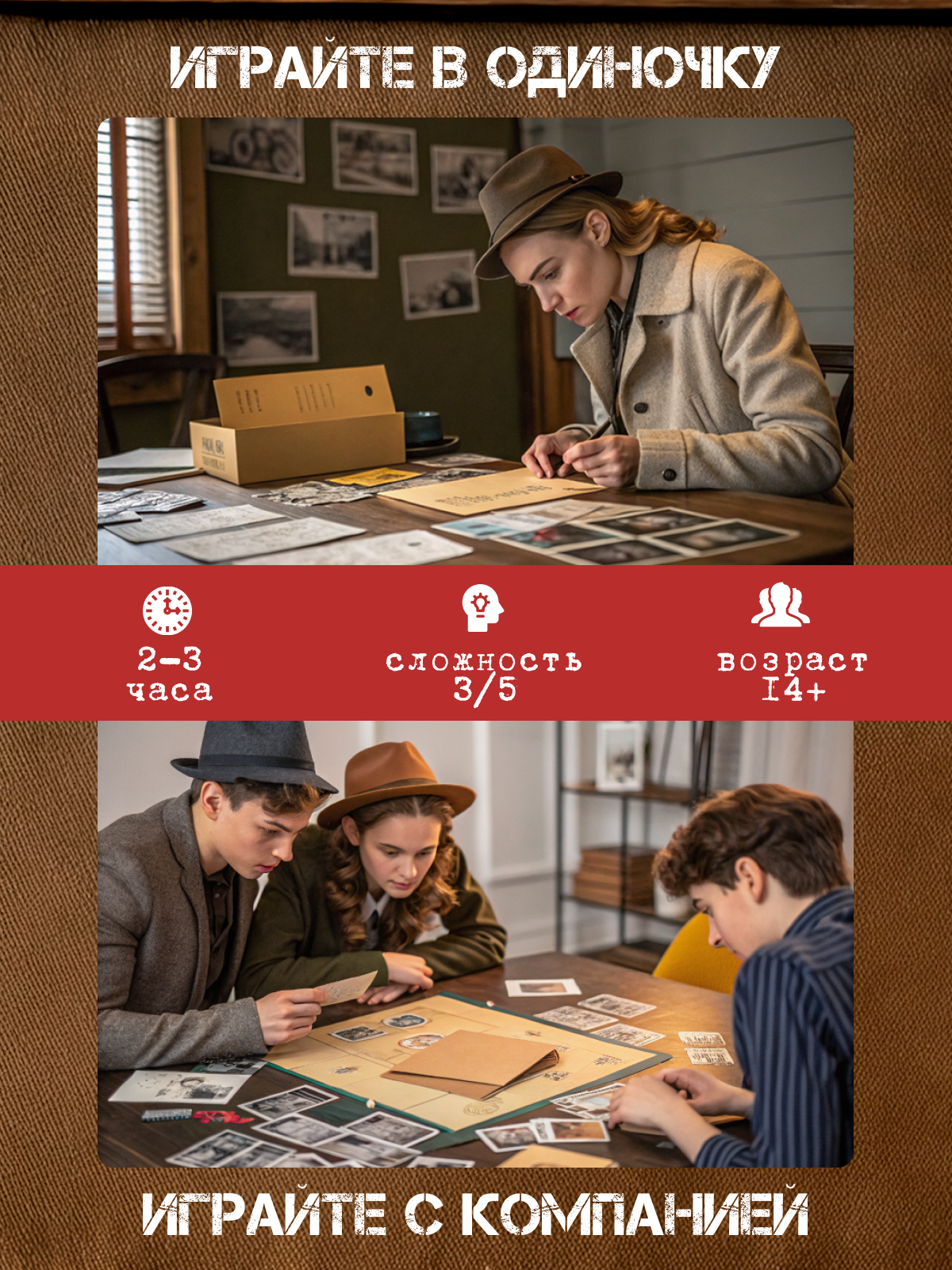 - Всё оформлено в ретро-стиле — как в настоящем детективном агентстве 1930-х.