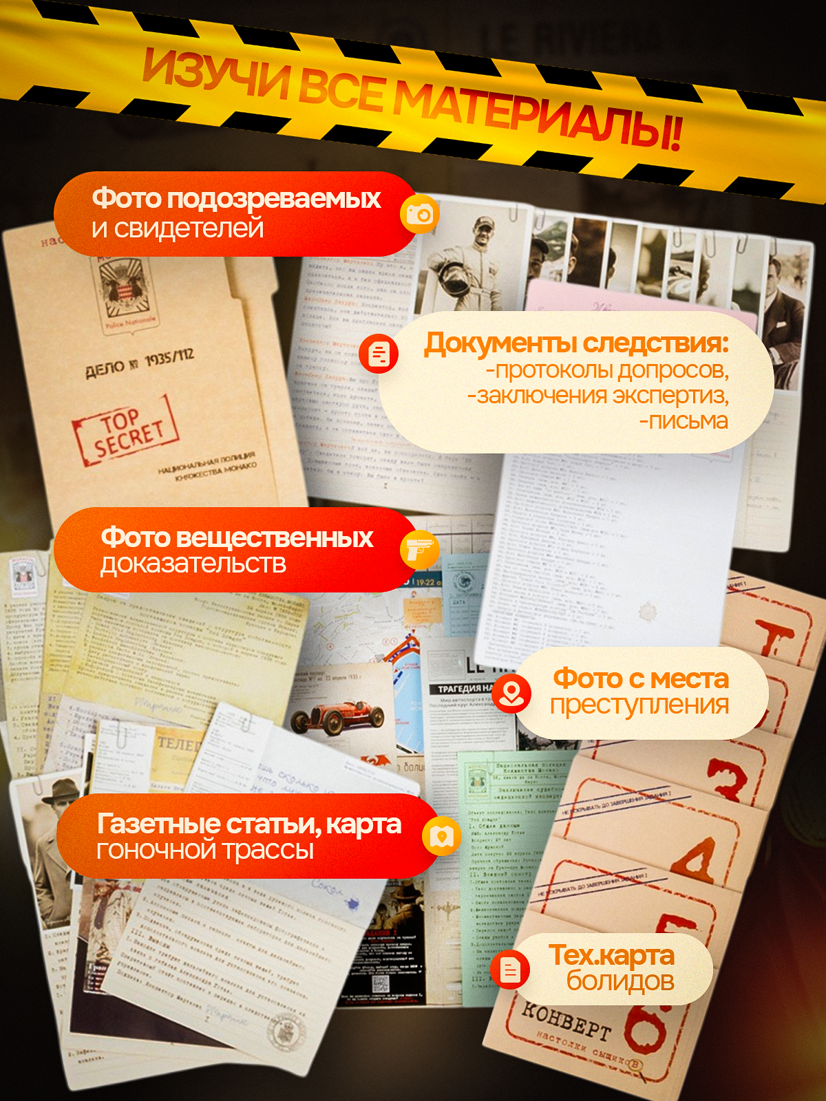 - Вы достаёте карточки, документы, улики.