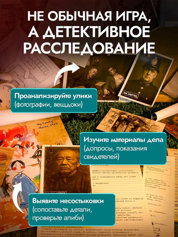 Вы — команда частных сыщиков. Перед вами — загадочное убийство. Улики. Свидетели. Документы. Тайны.